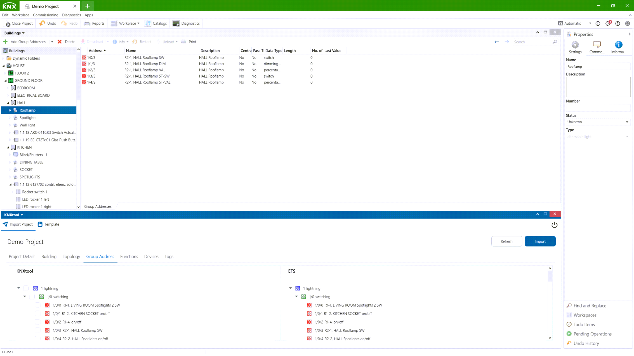 KNX Tool can export projects with the building structure, topology, group addresses, IoT functions, and pre-configured devices.