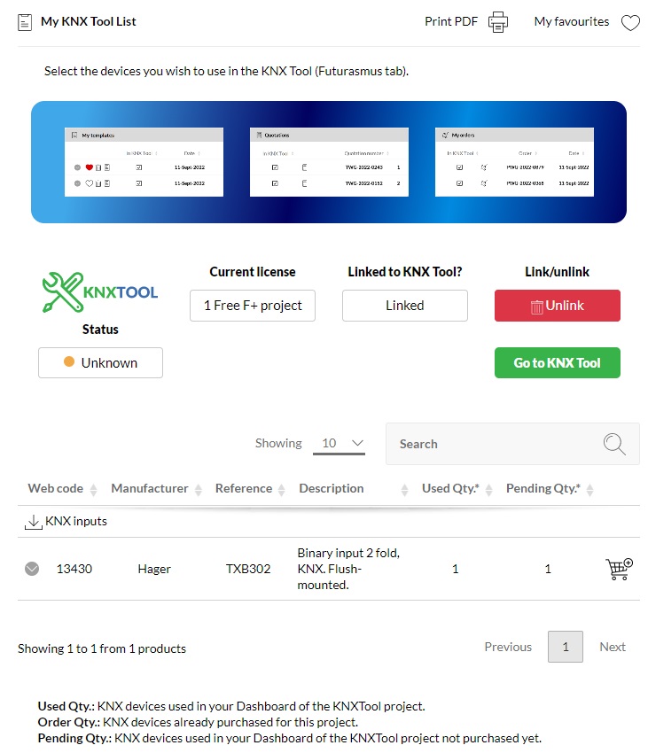 Link your KNX Tool to the Futurasmus Web Shop and directly order the products used in your project from within the tool.