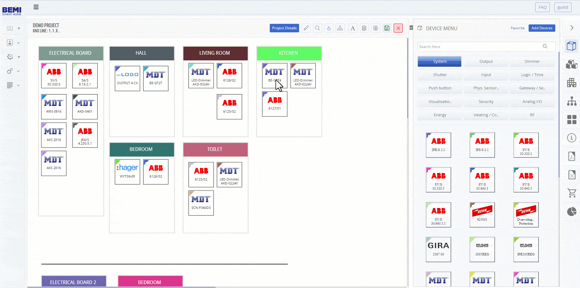 Customize KNX device configuration using KNX Tool’s easy-to-use project board and Online Catalogue of devices and functions. Include all necessary information such as Device Selling Price, Net Price, Programming Time, etc.