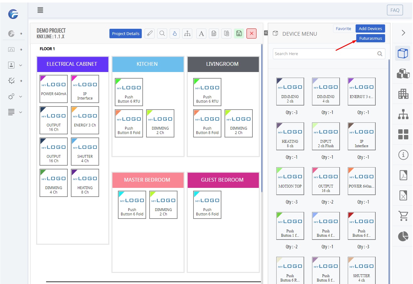 Select the devices you wish to use in the KNX Tool (Futurasmus tab). 4
